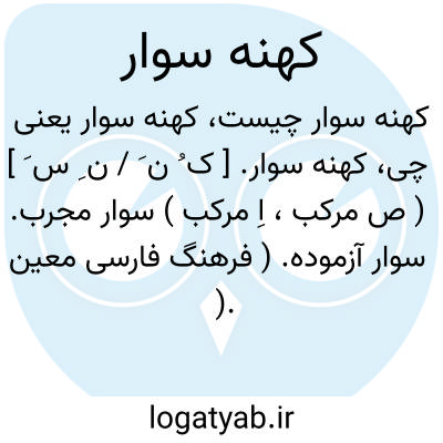 ( اسم ) ۱ - سوار مجرب سوار. آزموده. ۲ - کهنه کار در جنگ جنگ آزموده. ۳ - ( زورخانه ) مرشد زورخانه کسی که تعلیم کشتی گیری و ورزش باستانی دهد: آفرین باد بگفتار خوش کهنه سوار آن پسر خواند. پریای ولی در همه کار. ( گل کشتی ) ۴ - بسیار ماهر و زرنگ: از آن کهنه سوار هاست.