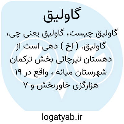 گاولیق. ( اِخ ) دهی است از دهستان تیرچائی بخش ترکمان شهرستان میانه، واقع در 19 هزارگزی خاوربخش و 7 هزارگزی شوسه میانه به تبریز. کوهستانی، معتدل، دارای 444 تن سکنه. آب آن از رود ایشاق، محصول آنجا غلات و حبوبات، شغل اهالی آن زراعت و گله داری، راه آن مالرو است. ( از فرهنگ جغرافیایی ایران ج 4 ).