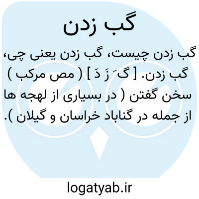 لغت نامه دهخدا گب زدن. [ گ َ زَ دَ ] ( مص مرکب ) سخن گفتن ( در بسیاری از لهجه ها از جمله در گناباد خراسان و گیلان ).