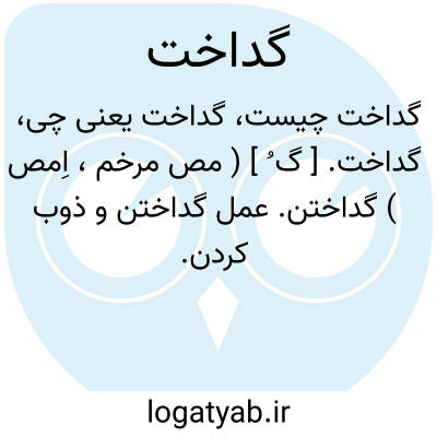 گداخت. [ گ ُ ] ( مص مرخم، اِمص ) گداختن. عمل گداختن و ذوب کردن.