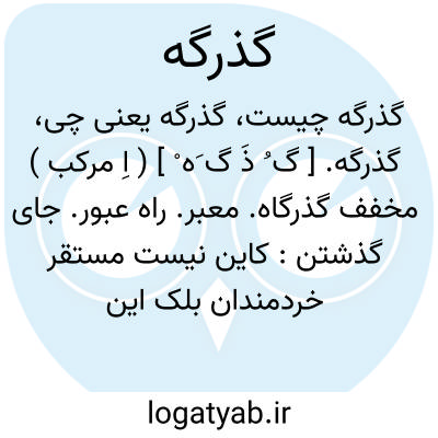 ( اسم ) ۱ - جای گذر محل عبور معبر: حق تعالی تقدیر کرد که گذرگاه زرند بر در دکان سعید جوهری بود. یا گذرگاه آب. جایی که آب از آن عبور کند معبر آب یا گذرگاه سیل. آبراهه.