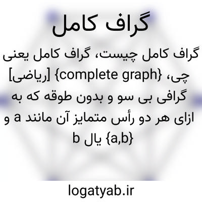 {complete graph} [ریاضی] گرافی بی سو و بدون طوقه که به ازای هر دو رأس متمایز آن مانند a و b یال {a,b} وجود داشته باشد