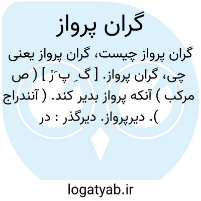 آنکه بکندی و سختی پرواز کند دیر پرواز: دراین بستان سرا خود را چنان صائب سبک کردم که رنگ چهر. گل را گران پرواز میدانم. ( صائب )