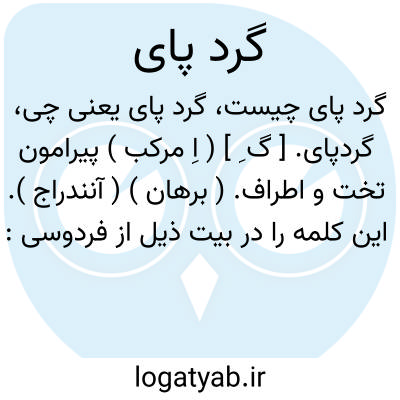 گردپای. [ گ ِ ] ( اِ مرکب ) پیرامون تخت و اطراف. ( برهان ) ( آنندراج ). این کلمه را در بیت ذیل از فردوسی: