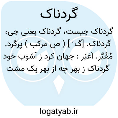 ز سرکوب گردش شده گردناک.نظامی.مردی بود که سفرهای دراز کند و اشعث و اغبر و گردناک شود. ( تفسیر ابوالفتوح ). رسول علیه السلام اشعث و اغبر و رسول ( ص ) کالیده موی و گردناک. ( تفسیر ابوالفتوح ج 2 ص 191 ).