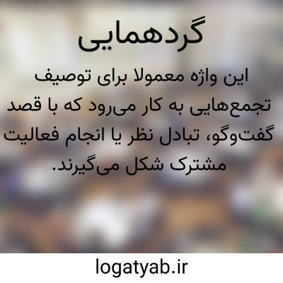 گردهمایی به معنای جمع شدن گروهی از افراد در یک زمان و مکان مشخص با هدفی معین است. این واژه معمولاً برای توصیف تجمع‌هایی به کار می‌رود که با قصد گفت‌وگو، تبادل نظر یا انجام فعالیت مشترک شکل می‌گیرند. گردهمایی می‌تواند جنبه رسمی داشته باشد، مانند نشست‌های علمی، اداری و فرهنگی، یا به صورت غیررسمی میان دوستان و آشنایان برگزار شود. در بسیاری از موارد، هدف از آن تقویت ارتباطات انسانی و اجتماعی است. این مفهوم نقش مهمی در هم‌اندیشی، همفکری و تصمیم‌گیری جمعی ایفا می‌کند. گردهمایی‌ها می‌توانند کوچک و محدود یا گسترده و عمومی باشند. در جوامع امروزی، گردهمایی‌ها گاه به صورت حضوری و گاه به شکل مجازی برگزار می‌شوند. به طور کلی، این واژه بیانگر کنار هم قرار گرفتن افراد برای دستیابی به هدفی مشترک است.
