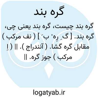 ( صفت ) ۱ - آنکه گره ایجاد کند. ۲ - آنکه مشکلی در امری پدید آرد مقابل گره گشا. ۳ - ( اسم ) تکمه دگمه گره: نقاب گل کشید و زلف سنبل گره بند قبال غنچه وا کرد. ( حافظ ) ۴ - کمر بند شلوار.