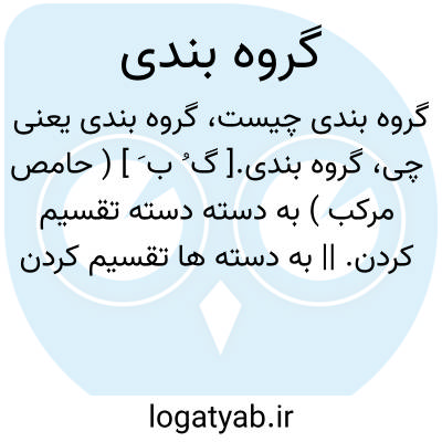 گروه بندی.[ گ ُ ب َ ] ( حامص مرکب ) به دسته دسته تقسیم کردن. || به دسته ها تقسیم کردن واحدهای نظامی را.
