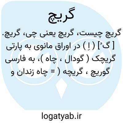 گریچ. [ گ ُ] ( اِ ) در اوراق مانوی به پارتی گریچک ( گودال، چاه )، به فارسی گوریچ، گریچه ( = چاه زندان و غیره ). مربوط به پهلوی گریستغ ( غار، مغاره )؟ ( از حاشیه برهان چ معین ). || تالار خانه. ( برهان ) ( آنندراج ). || خانه کوچک. || کنج و گوشه و بیغوله. ( برهان ). || نقب و زیرزمین. || چاه زندان باشد. ( برهان ) ( آنندراج ).