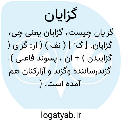 گزایان. [ گ َ ] ( نف ) ( از: گزای ( گزاییدن ) + ان، پسوند فاعلی ). گزندرساننده وگزند و آزارکنان هم آمده است. ( برهان ):