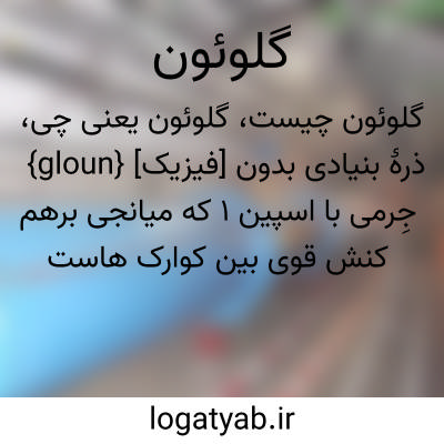 {gloun} [فیزیک] ذرۀ بنیادی بدون جِرمی با اسپین 1 که میانجی برهم کنش قوی بین کوارک هاست