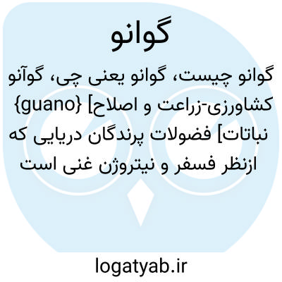 {guano} [کشاورزی-زراعت و اصلاح نباتات] فضولات پرندگان دریایی که ازنظر فسفر و نیتروژن غنی است