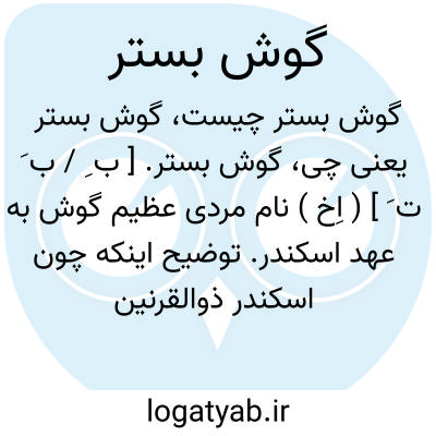 ( اسم ) هر یک از افراد قومی که گوششان چندان پهن بود که چون میخوابیدند یک گوش را بستر و گوش دیگر را لحاف میکردند ( داستان ). توضیح فردوسی در لشکر کشیدن اسکندر بسوی بابل آورد: سکندر سیه سوی بابل کشید ز گرد سپه شد جهان نا پدید.... پدید آمد از دور مردی سترگ پر از موی با گوشهای بزرگ تنش زیر موی اندرون همچو نیل دو گوشش به پهنای دو گوش پیل چو دیدند گردان کسی زین نشان ببردند پیش سکندر کشان سکندر نگه کرد زو خیره ماند برو برهمی نام یزدان بخواند چه مردی ? بدو گفت و نام تو چیست ? ز دریاچه یابی و کام تو چیست ? بدو گفت: شاها. مرا باب و مام همی گوش بستر نهادند نام...