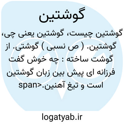 زبان گوشتین است و تیغ آهنین.نظامی.|| سمین و فربه. ( ناظم الاطباء ). گوشتناک. پرگوشت. فربی. بسیارگوشت: الحادره؛ مردم گوشتین ستبر. عین حادرة؛ چشمی گوشتین و تمام. ( مهذب الاسماء ). || غذایی که از گوشت سازند. ( از ناظم الاطباء ).