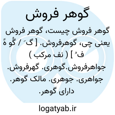 گوهرفروش. [ گ َ / گُو هََ ف ُ ] ( نف مرکب ) جواهرفروش.گوهری. گهرفروش. جواهری. جوهری. مالک گوهر. دارای گوهر. گوهردار. دارنده گوهر. صاحب گوهر: