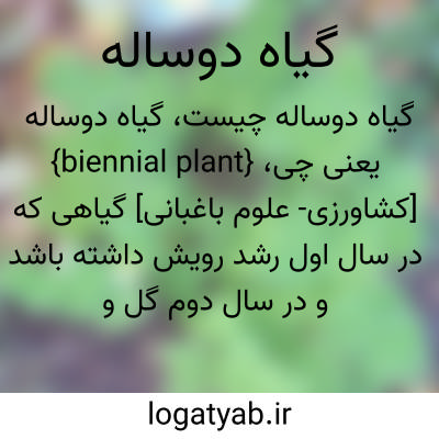 {biennial plant} [کشاورزی- علوم باغبانی] گیاهی که در سال اول رشد رویش داشته باشد و در سال دوم گل و بذر تولید کند و سپس از بین برود