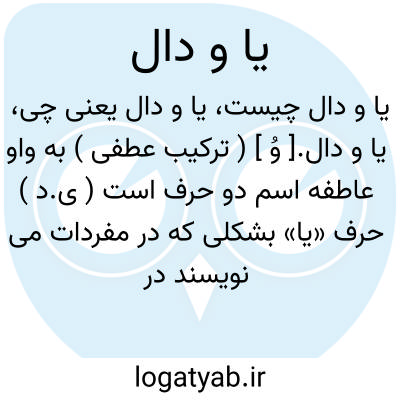 یا و دال.[ وُ ] ( ترکیب عطفی ) به واو عاطفه اسم دو حرف است ( ی.د ) حرف «یا» بشکلی که در مفردات می نویسند در تقویم علامت برج دلو است و هم علامت مشتری و دال علامت برج اسد است و هم علامت عطارد. ( غیاث اللغات ) ( آنندراج ).