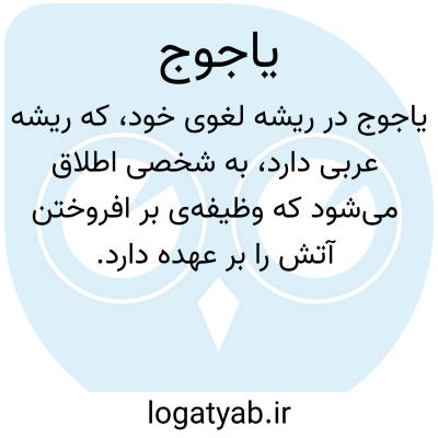 یأجوج در ریشه لغوی خود، که ریشهٔ عربی دارد، به شخصی اطلاق می‌شود که وظیفه‌ی بر افروختن آتش را بر عهده دارد؛ به عبارت دیگر، آتش‌افروز است. این معنا در برخی متون کهن نظیر آنندراج ثبت شده است. با این حال، کاربرد این واژه اغلب در پیوند با ترکیب مشهور یأجوج و مأجوج است که در متون دینی و تاریخی به دو قوم یا گروهی عظیم اشاره دارد که در پسِ سدی عظیم محبوس‌اند و در آخرالزمان رها خواهند شد. از این‌رو، در بسیاری از متون، واژه «یأجوج» به تنهایی به این مفهوم اسطوره‌ای ارجاع داده می‌شود.