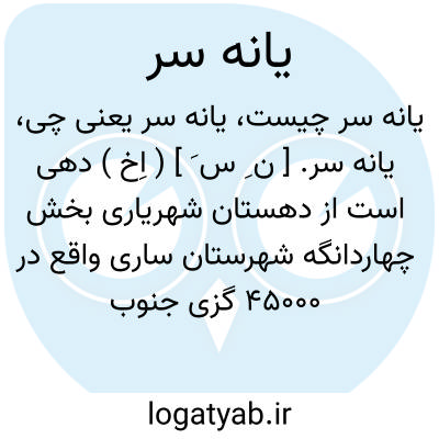 یانه سر. [ ن ِ س َ ] ( اِخ ) دهی است از دهستان شهریاری بخش چهاردانگه شهرستان ساری واقع در 45000 گزی جنوب خاوری بهشهر. دارای 610 تن سکنه است. ( از فرهنگ جغرافیایی ایران ج 3 ).