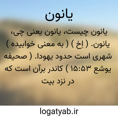 یانون. ( اِخ ) ( به معنی خوابیده ) شهری است حدود یهودا. ( صحیفه یوشع 15:53 ) کاندر برآن است که در نزد بیت نعیم نزدیکی جرون واقع است. ( قاموس کتاب مقدس ).