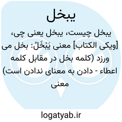 [ویکی الکتاب] معنی یَبْخَلُ: بخل می ورزد (کلمه بخل در مقابل کلمه اعطاء - دادن به معنای ندادن است) معنی یَبْخَلْ: بخل بورزد (کلمه بخل در مقابل کلمه اعطاء - دادن به معنای ندادن است.جزمش به دلیل شرط شدن برای جمله بعدی است) ریشه کلمه: بخل (۱۲ بار)