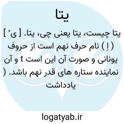 یتا. [ ی ُ ] ( اِ ) نام حرف نهم است از حروف یونانی و صورت آن این است t و آن نماینده ستاره های قدر نهم باشد. ( یادداشت مؤلف ). یوطا. ( ابن الندیم ). و رجوع به یوطا شود.