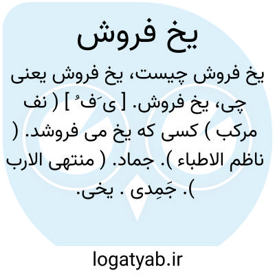 یخ فروش. [ ی َف ُ ] ( نف مرکب ) کسی که یخ می فروشد. ( ناظم الاطباء ). جماد. ( منتهی الارب ). جَمِدی. یخی. ( یادداشت مؤلف ).