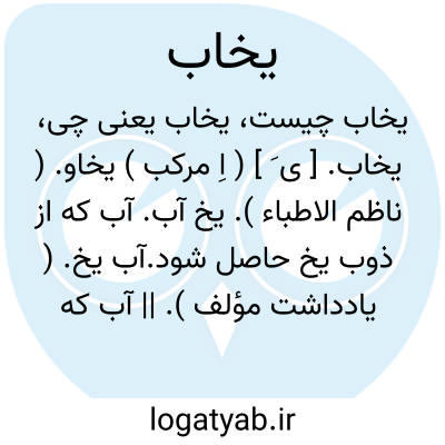 یخاب. [ ی َ ] ( اِ مرکب ) یخاو. ( ناظم الاطباء ). یخ آب. آب که از ذوب یخ حاصل شود.آب یخ. ( یادداشت مؤلف ). || آب که در آن یخ نهاده اند سرد شدن را. آبی که در آن یخ ریخته باشند. ( یادداشت مؤلف ). || آبی که به زمستان به زمین دهند و گویند آن حشرات موذیه را براندازد. آب که باغ و مزرعه را دهند گاهی که زمین یخ بسته است کشتن حشرات موذیه و تحت الارضی را. ( یادداشت مؤلف ).
