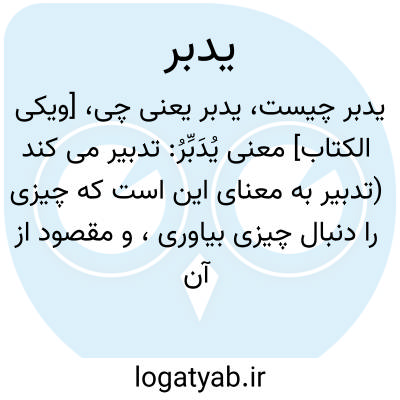 [ویکی الکتاب] معنی یُدَبِّرُ: تدبیر می کند (تدبیر به معنای این است که چیزی را دنبال چیزی بیاوری، و مقصود از آن این است که اشیای متعدد و مختلف را طوری تنظیم کنی و ترتیب دهی که هر کدام در جای خاص خود قرار بگیرد، بطوری که به محض تنظیم، آن غرضی که از هر کدام آنها داری و فائدهای که...