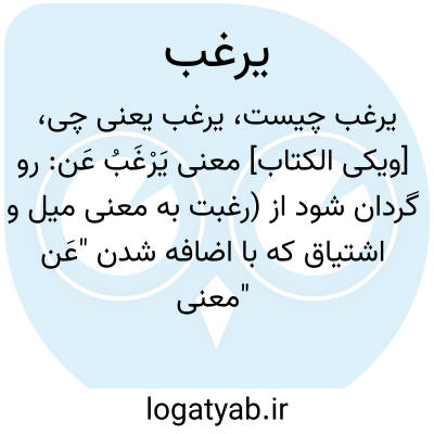 [ویکی الکتاب] معنی یَرْغَبُ عَن: رو گردان شود از (رغبت به معنی میل و اشتیاق که با اضافه شدن "عَن "معنی اش "اعراض و نفرت" شده است)