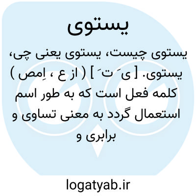 یستوی. [ ی َ ت َ ] ( از ع، اِمص ) کلمه فعل است که به طور اسم استعمال گردد به معنی تساوی و برابری و همسری. ( ناظم الاطباء ). || ( ع فعل ) برابر است. مساوی است: