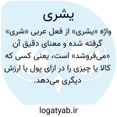 واژه «یَشْرِی» از فعل عربی «شرى» گرفته شده و معنای دقیق آن «می‌فروشد» است، یعنی کسی که کالا یا چیزی را در ازای پول یا ارزش دیگری می‌دهد. ریشه کلمه «شری» است و این ریشه در زبان عربی همواره با مفهوم خرید و فروش و دادوستد مرتبط است. «یشری» به صورت حال ساده برای شخص سوم مفرد مذکر به کار می‌رود و بیانگر عملی است که در زمان حال انجام می‌شود، یعنی اقدام به فروش یا عرضه کالا. در متون قرآنی و ادبی، این واژه معمولاً در زمینه معاملات اقتصادی، تجارت و مبادلات مادی استفاده شده و گاهی به معنای مبادله کلی دارایی‌ها نیز آمده است. فهم دقیق «یشری» به شناخت نوع معامله و طرفین آن وابسته است و تأکید آن بر عمل فروشنده است، نه خریدار. به عبارت دیگر، «یشری» عملی است که فروشنده انجام می‌دهد تا کالا یا خدمت خود را در برابر پول یا ارزش دیگر واگذار کند. این واژه در کاربردهای روزمره و متون فقهی نیز معنای تجاری و اقتصادی خود را حفظ کرده است. در مجموع، «یشری» به معنای دقیق و روشن «عمل فروختن یا عرضه کردن کالا» است و نشان‌دهنده نقش فعال فروشنده در معامله است.