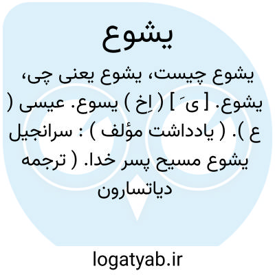 یشوع. [ ی َ ] ( اِخ ) یسوع. عیسی ( ع ). ( یادداشت مؤلف ): سرانجیل یشوع مسیح پسر خدا. ( ترجمه دیاتسارون ص 16 ). رجوع به یسوع و عیسی شود.