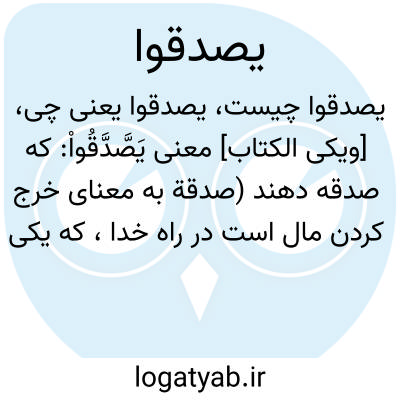[ویکی الکتاب] معنی یَصَّدَّقُواْ: که صدقه دهند (صدقة به معنای خرج کردن مال است در راه خدا، که یکی از مصادیق آن زکات واجب است)