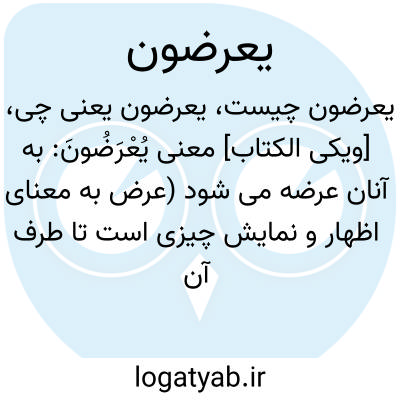 [ویکی الکتاب] معنی یُعْرَضُونَ: به آنان عرضه می شود (عرض به معنای اظهار و نمایش چیزی است تا طرف آن را ببیند و به موضع آن واقف گردد )