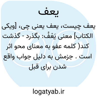 [ویکی الکتاب] معنی یَعْفُ: بگذرد - گذشت کند( کلمه عفو به معنای محو اثر است. جزمش به دلیل جواب واقع شدن برای قبل از خود می باشد)