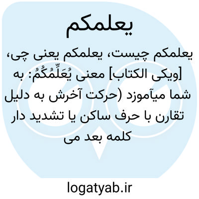 [ویکی الکتاب] معنی یُعَلِّمُکُمُ: به شما میآموزد (حرکت آخرش به دلیل تقارن با حرف ساکن یا تشدید دار کلمه بعد می باشد )