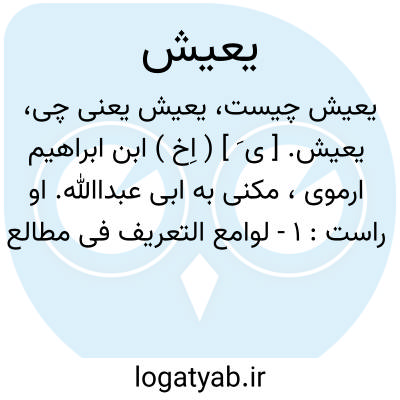 یعیش. [ ی َ ] ( اِخ ) ابن ابراهیم ارموی، مکنی به ابی عبداﷲ. او راست: 1 - لوامع التعریف فی مطالع التصریف. 2 - الاستنطاقات، و آن را از کنزالاسرار هرمس الهرامسه استخراج کرده. 3 - المواهب الربانیة فی الاسرار الروحانیة. ( از یادداشت مؤلف ).
