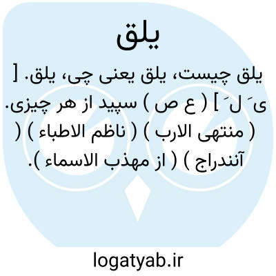 یلق. [ ی َ ل َ ] ( ع ص ) سپید از هر چیزی. ( منتهی الارب ) ( ناظم الاطباء ) ( آنندراج ) ( از مهذب الاسماء ).