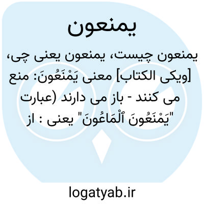 [ویکی الکتاب] معنی یَمْنَعُونَ: منع می کنند - باز می دارند (عبارت "یَمْنَعُونَ ﭐلْمَاعُونَ" یعنی: از [رسیدن] وسایل و ابزار ضروری زندگی [و زکات و هدیه و صدقه به نیازمندان] جلوگیری می کنند)