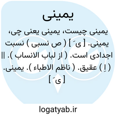 یمینی. [ ی َ ] ( ص نسبی ) نسبت اجدادی است. ( از لباب الانساب ). || ( اِ ) عقیق. ( ناظم الاطباء ).