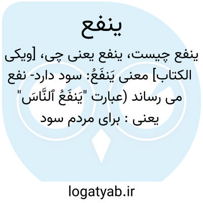 [ویکی الکتاب] معنی یَنفَعُ: سود دارد- نفع می رساند (عبارت "یَنفَعُ ﭐلنَّاسَ" یعنی: برای مردم سود دارد)