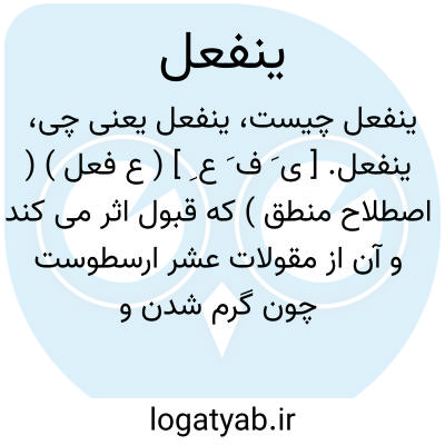 ینفعل. [ ی َ ف َ ع ِ ] ( ع فعل ) ( اصطلاح منطق ) که قبول اثر می کند و آن از مقولات عشر ارسطوست چون گرم شدن و بریده شدن. ( یادداشت مؤلف ).