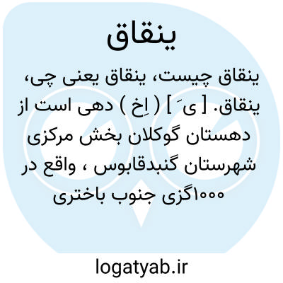 ینقاق. [ ی َ ] ( اِخ ) دهی است از دهستان گوکلان بخش مرکزی شهرستان گنبدقابوس، واقع در 1000گزی جنوب باختری کلاله، با 400 تن سکنه. آب آن از رودخانه دوچای و راه آن مالرو است. ( از فرهنگ جغرافیایی ایران ج 3 ).