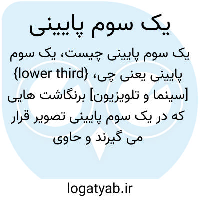 {lower third} [سینما و تلویزیون] برنگاشت هایی که در یک سوم پایینی تصویر قرار می گیرند و حاوی اطلاعاتی نظیر نام گوینده یا موضوع برنامه است