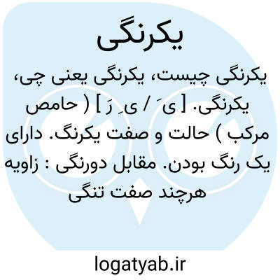 یکرنگی. [ ی َ / ی ِ رَ ] ( حامص مرکب ) حالت و صفت یکرنگ. دارای یک رنگ بودن. مقابل دورنگی: زاویه هرچند صفت تنگی آرد از روی جنسیت و اتحاد یکرنگی دارد. ( سندبادنامه ص 107 ). || کنایه از اخلاص مندی و یک جهتی و دوستی باشد که در آن شائبه ای از نفاق و ساختگی و ریا نباشد. ( برهان ) ( از آنندراج ). صداقت. دوستی. ( ناظم الاطباء ). خلوص. صفا. صمیمیت. یگانگی. یکدلی. یک جهتی. ( یادداشت مؤلف ):