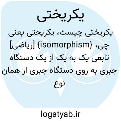 {isomorphism} [ریاضی] تابعی یک به یک از یک دستگاه جبری به روی دستگاه جبری از همان نوع
