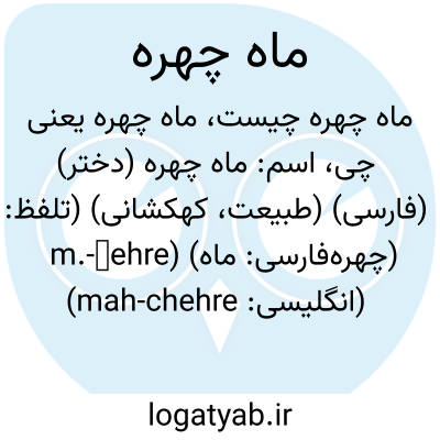 معنی: ترکیب دو اسم ماه و چهره ( زیبا و صورت )، ماه چهر، آن که چهره اش چون ماه تابان و درخشان است، زیبارو
