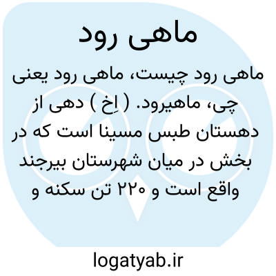 ماهیرود. ( اِخ ) دهی از دهستان طبس مسینا است که در بخش در میان شهرستان بیرجند واقع است و 220 تن سکنه و پاسگاه ژاندارمری دارد. ( از فرهنگ جغرافیایی ایران ج 9 ).