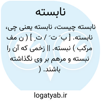 ( صفت ) ۱ - نبسته بسته نشده. ۲ - زخمی که بسته نشده و مرهم بر آن ننهاده اند: تن پیلتن راچنان خسته دید همه خستگیهاش نابسته دید. ( شا. ) ۳ - آزاد نامقید مقابل گرفتار اسیر ( جمع: نابستگان ): وزان زاری و ناله خستگان ببند اندر آیند نابستگان. ( شا. ) مقابل بسته.